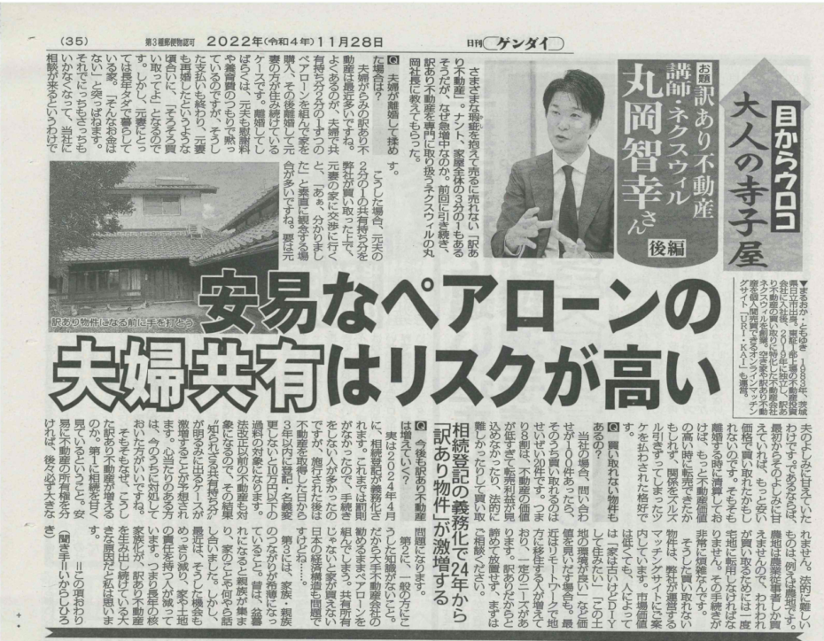 21日に発行された前編に続き、後編として「安易なペアローンの夫婦共有はリスクが高い」という見出しで、ご紹介いただいています。