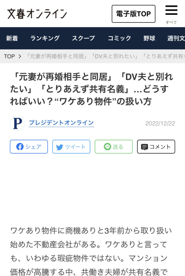 《「元妻が再婚相手と同居」「DV夫と別れたい」「とりあえず共有名義」…どうすればいい?“ワケあり物件”の扱い方》の見出しで、