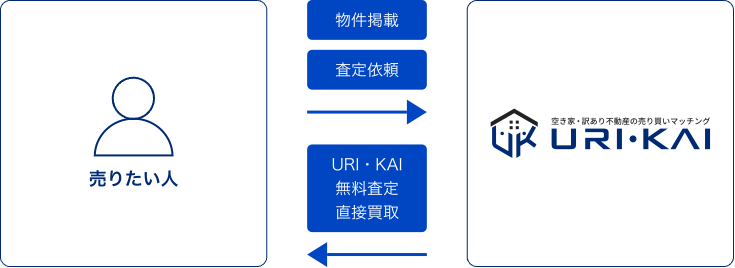 自社で直接買い取りを行う制度があります。無料査定をご希望のお客様の物件情報からURI・KAIが買取金額をご提示いたします。お客さまが買取条件にご承諾いただける場合はURI・KAIが直接買い取りさせていただきます。条件にご承諾いただけない場合は、URI・KAIポータルサイトに掲載させていただきます。