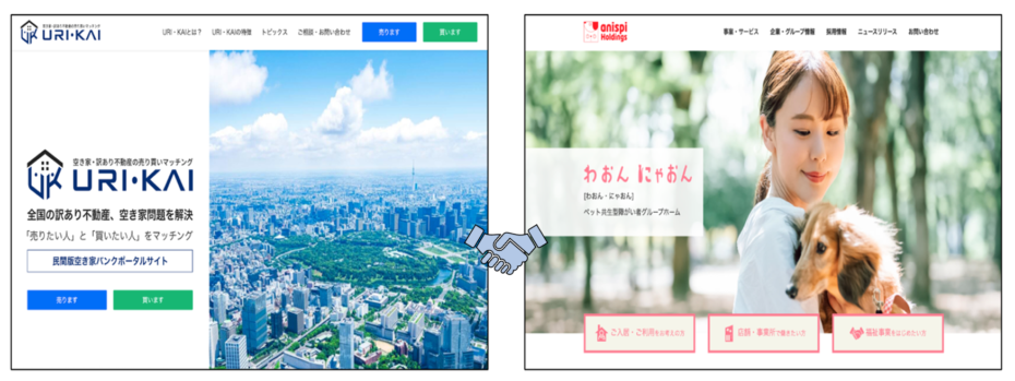 今回のアニスピホールディングスとの業務提携により、URI・KAIに掲載された空き家物件を、ペット共生型障がい者グループホームや、障がい者デイサービスの拠点として再活用することが可能となりました。これにより、当社として買取できる物件の条件が緩和され、空き家を手放したいお客様のニーズによりお応えすることができるようになります。