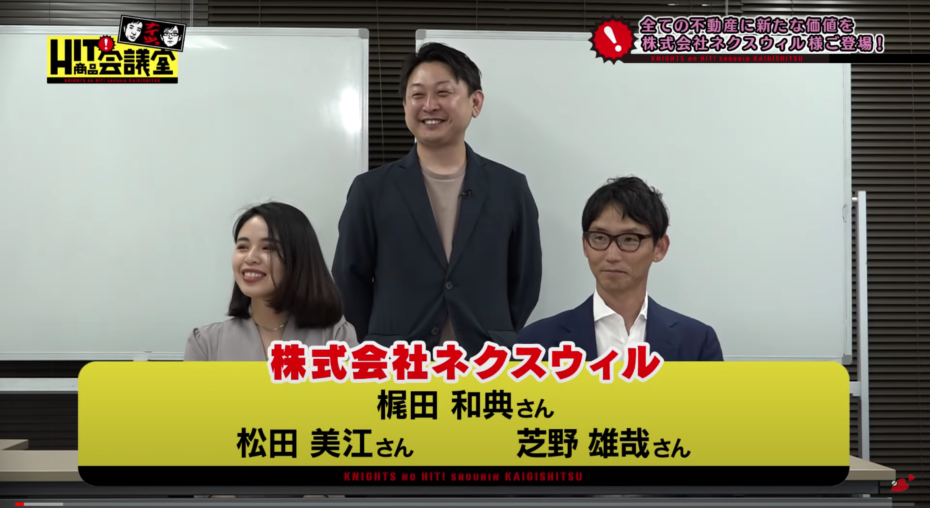 今回は、弊社の訳あり不動産買取再販事業について、ナイツのHIT商品会議室にてプロデュースをしていただきました。